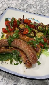 - Roast for about 40 minutes, until the vegetables are very tender and the sausages are browned.