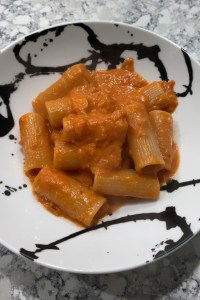 - Cook the pasta. While the sauce simmers, bring salted water to a boil and cook rigatoni until just al dente. (Pro tip: stop cooking a minute early and let it finish in the sauce for extra flavor.)